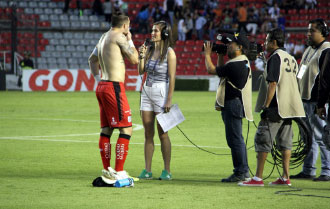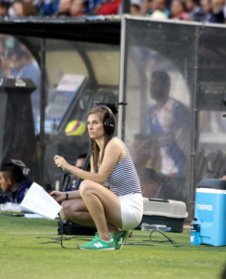 No obstante, hay una figura a la que admira desde pequeña, un jugador al que quería perecerse en la cancha y con quien, al paso del tiempo, colabora como colega en la mesa de discusión: «Cuando empecé a jugar, siempre usaba el número 7 porque mi ídolo, aunque soy regia y soy rayada, siempre fue Ramón Ramírez. Cuando me invitaron a Imagen TV, al proyecto Adrenalina, les pregunté quiénes eran los demás integrantes de la mesa. Imagínate cuando llegué y me dijeron que iba a trabajar con la persona por la que traía el número 7, imagínate cómo era mi pánico, lo veía y pensaba: “¡guau, estoy platicando con él!”. Y al paso del tiempo, evidentemente te vuelves amiga y compañera de estas personas y es bonito poder salir de una transmisión y que te diga Ramón: “Oye, vamos a desayunar para platicar del partido tal”. Qué padre esta profesión, que me da la posibilidad de poder trabajar y conversar con mi ídolo».